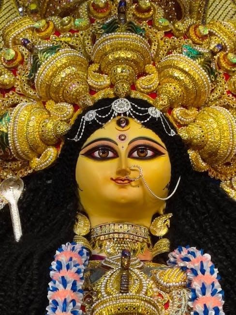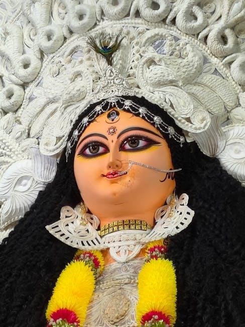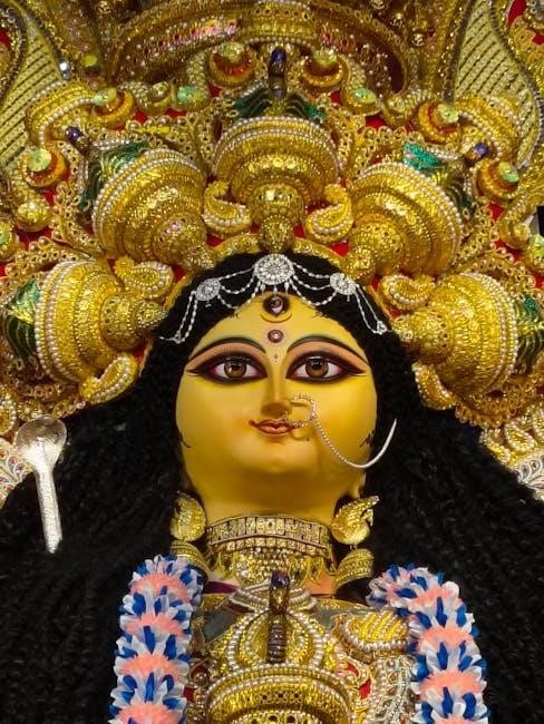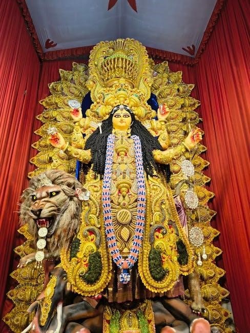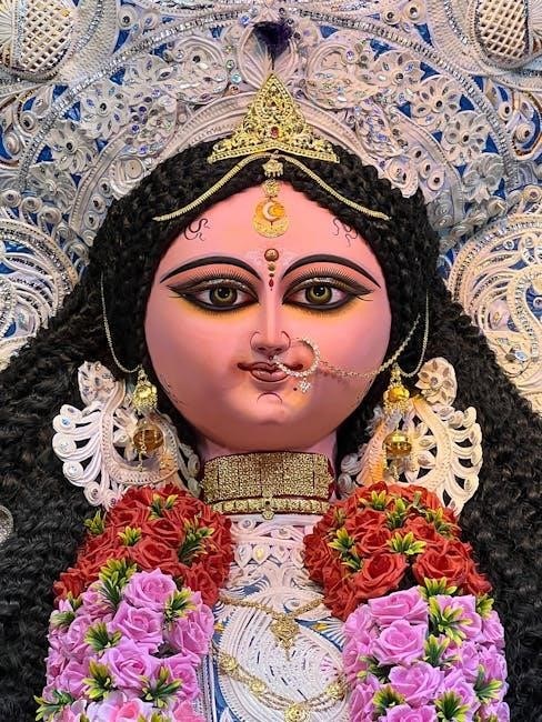 Devotees often download the Durga Chalisa in Hindi PDF for easy access during rituals and personal chanting. This sacred text is a testament to the enduring reverence for Goddess Durga, providing a profound connection to her divine energy and blessings.